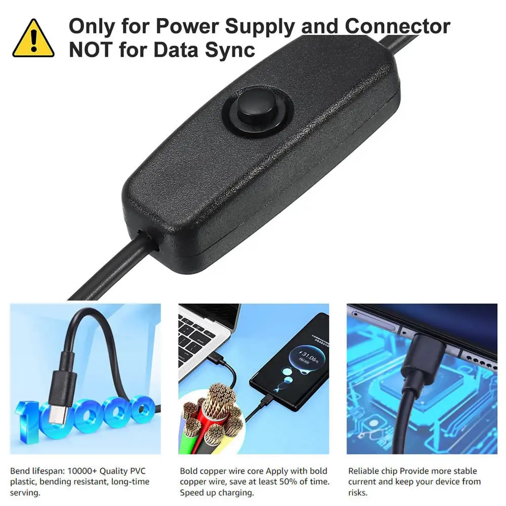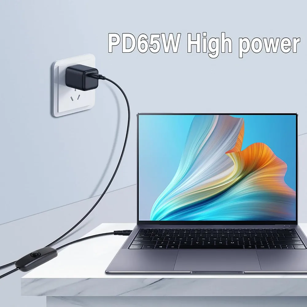 PD 60W USB C to Type C On Off Switch Cable, 5V-20V/3A PD Fast Charging Cord For Type C Phone Tablets Macbook and More 120cm