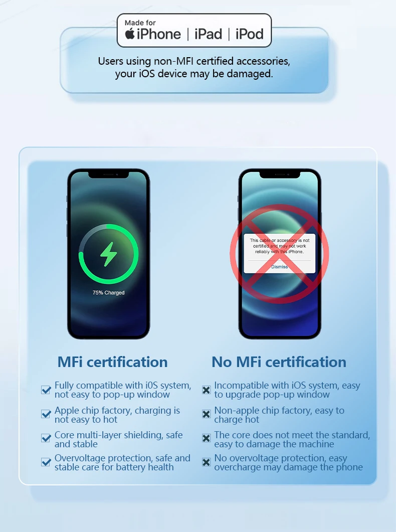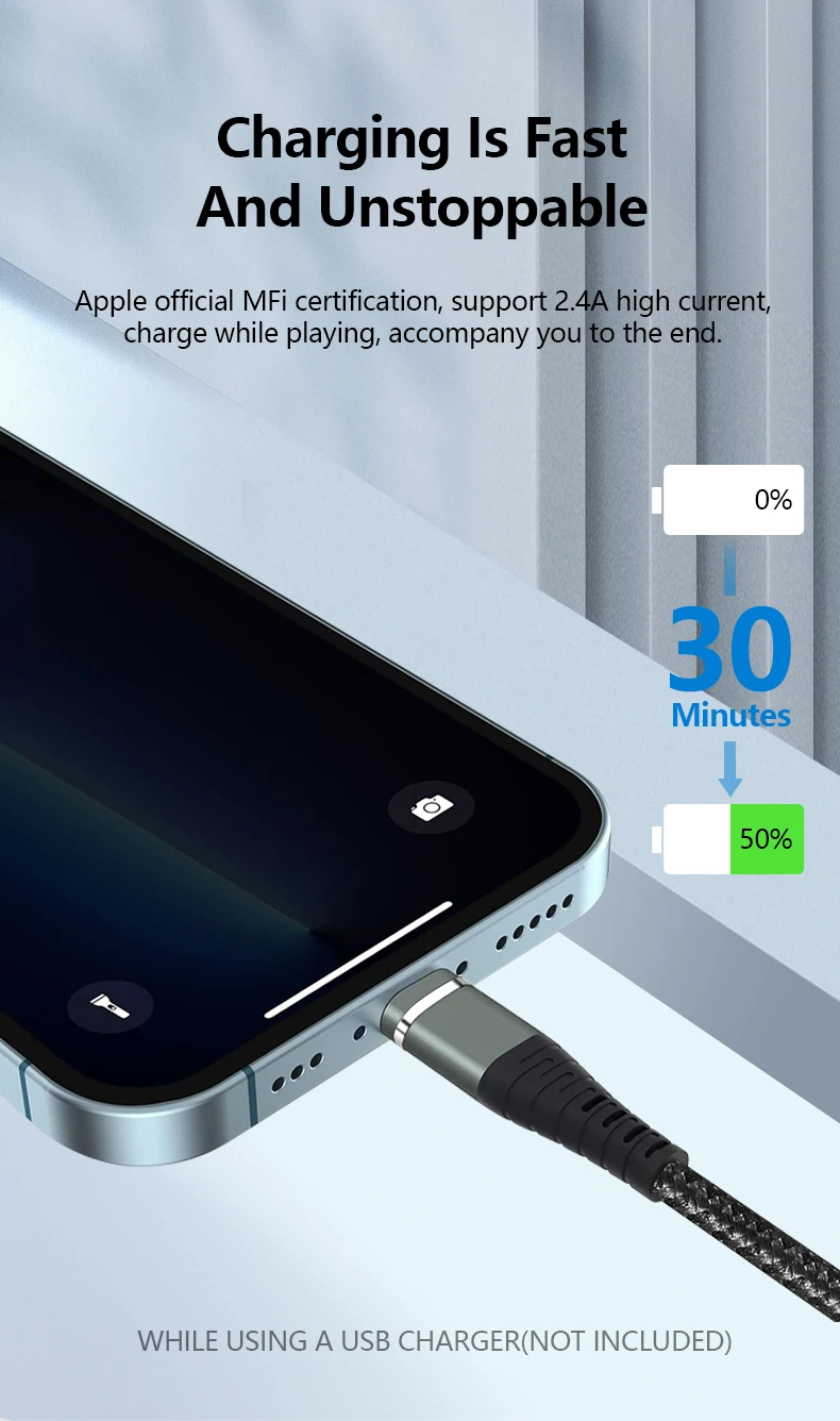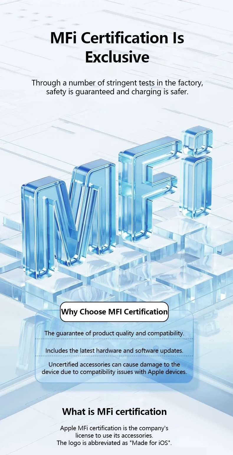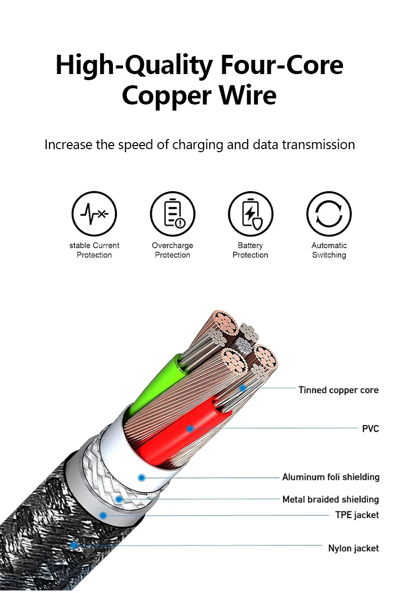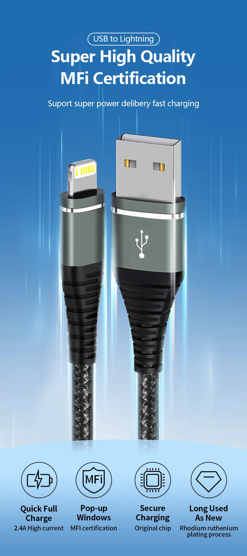 [Fast Charging]: Internationally Certified Materials And Exquisite Design Safe Fast Charging Cables This iPhone charger cable are made of high purity four-core copper core and intelligent chip and high-quality TPE ,with overcharge protection, stable current protection and battery protection design.