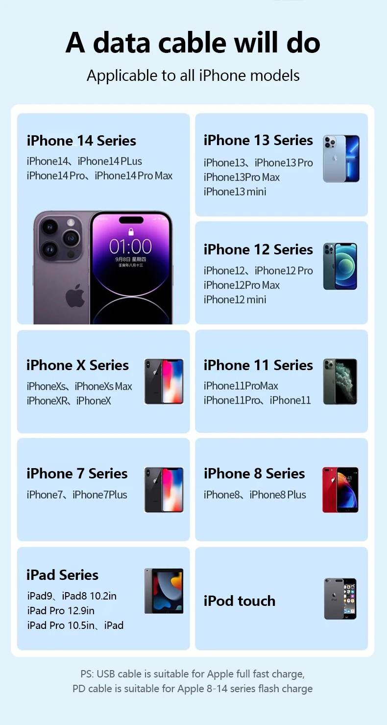 [Compatible]: Compatible with iPhone 14/iPhone 14 Pro/iPhone 14 Pro Max/iPhone 14 Plus/iPhone 13/ iPhone 13 Pro/iPhone 13 Pro Max/iPhone 13 Mini/iPhone 12/iPhone 12 Pro/iPhone 12 Pro Max/iPhone 12 Mini/iPhone11/iPhone 11 Pro/iPhone 11 Pro Max/iPhone X/iPhone XR/iPhone XS/iPhone XS Max/iPhone 7/iPhone 7 Plus/iPhone 8/iPhone 8 Plus/iPhone 6/iPhone 6s/iPhone 6 Plus/iPhone 5/iPhone SE and More lightning mobile phone.